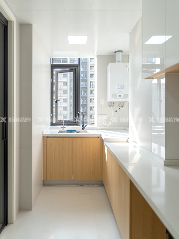 过道走廊搭配无拉手柜门,充分利用每一个收纳空间,整个空间完全不会拥挤,简洁又大方。