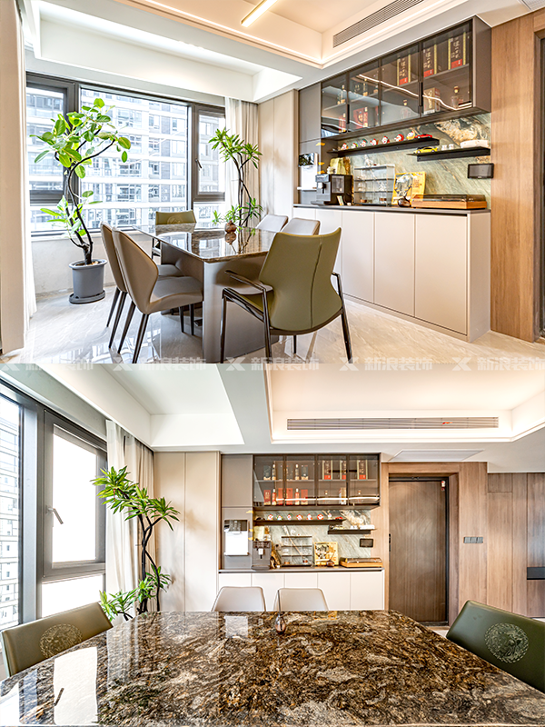 ▪暗绿色奢华岩板装饰,和餐边柜互相呼应,打造低调的奢华视觉享受。