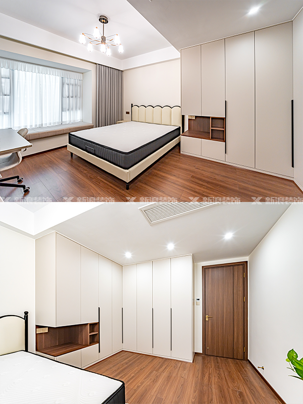 高端全屋定制:万象天冠18mm厚实木柜体、Pet肤感柜门、奥地利进口百隆五金高端高端软装:慕思床垫、芝华士沙发、大牌餐桌椅+窗帘+灯具