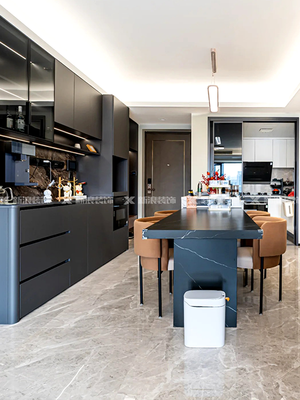 新浪装饰,极刻美家,丽尔曼顿,收纳空间设计,现代风装修设计,整墙餐边柜,实景落地,精装房装修,高级感装修,新房装修
