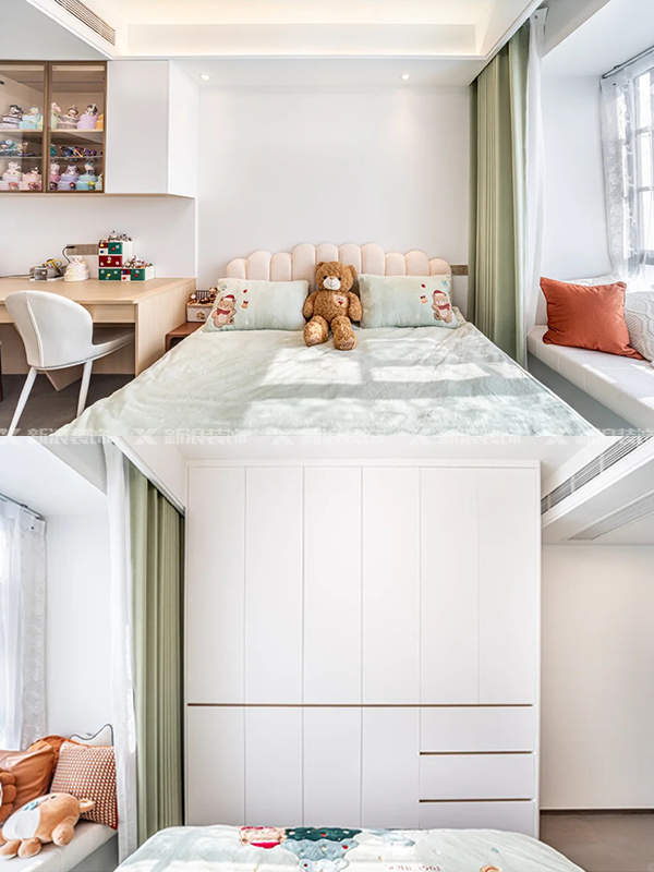 卧室根据需求做定制衣柜书桌一体,原木色和白色拼色,不显乏味。