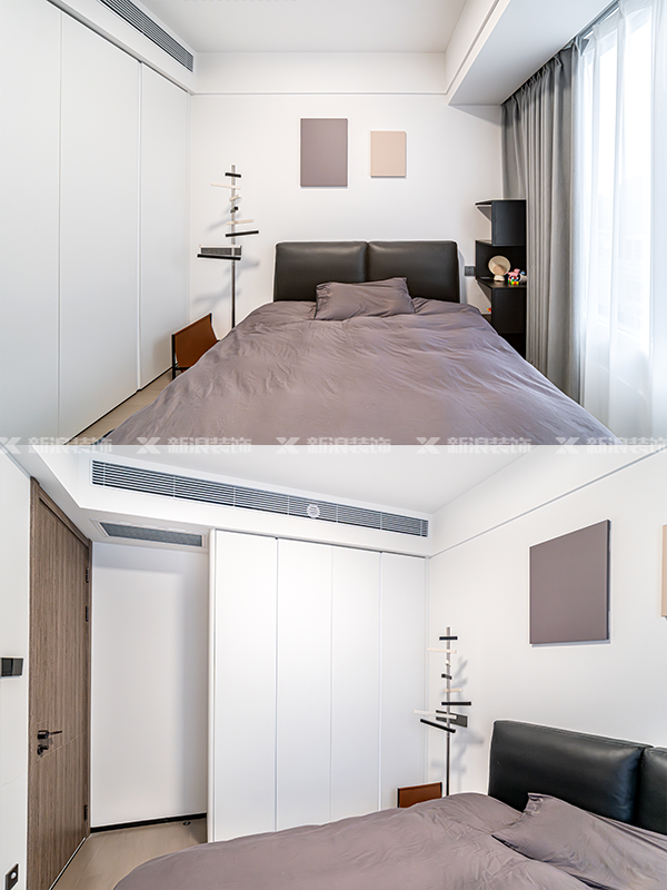 主卧壁挂式衣帽间,预留次净衣区,同时增加了很大的观赏性。