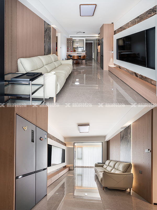 开放式客餐厅:悬浮电视柜+通顶餐边柜