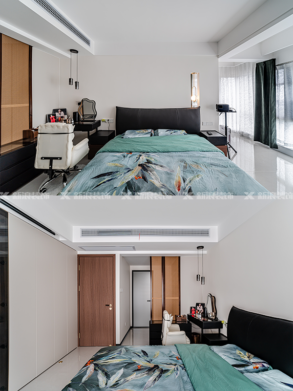 3、主卧藤编屏风梳妆台,暗藏设计小心机,功能和美观性叠加。