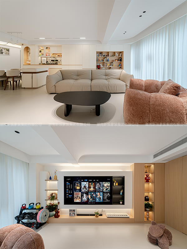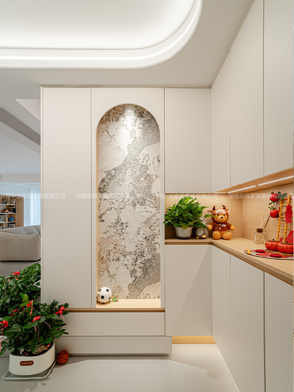 · 圆润感: 多采用弧形或曲线设计,如拱形门洞、圆角柜子、圆形茶几等,弱化直线的冷硬,与风格的温柔调性相符。