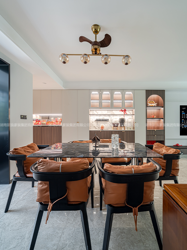 客餐厅装修,装修风格,中古风装修,实景落地,客餐厅一体,装修案例,长沙装修,全屋定制工厂,丽尔曼顿高端全屋定制工厂