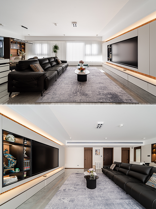 客厅的整面储物柜顶天立地的设计超显大气,藏起所有杂乱~