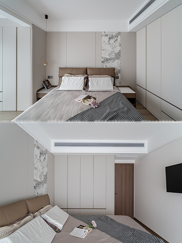 衣柜和储物柜都用了隐形把手,没有多余的凸起,整个空间更显简洁利落。