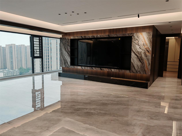 随后,巡检专家来到了湖南丽尔曼顿位于中建钰和城的待验收工地,在这里,湖南丽尔曼顿高水准设计及落地得到了充分的彰显,一套意式风格的装修完美落地。建面约190㎡的房子内,无主灯的设计及大面积地砖的铺设,不仅让空间感更足,实木柜体及隐形门的设计打造,让居家的质感具象化。
