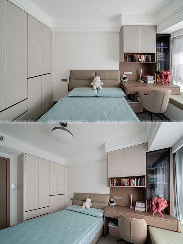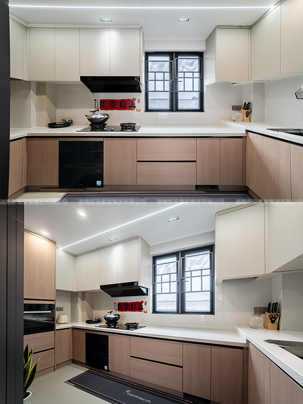 极致收纳: “少即是多”的前提是“有地方藏”。大量使用顶天立地的隐形柜体,将所有杂物“藏”起来,保持视觉上的绝对整洁。