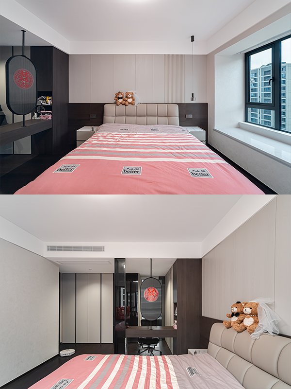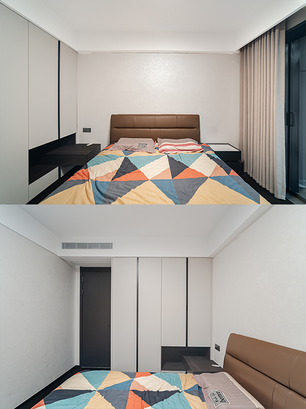 卧室主打静谧感!软包床头+床头撞色背景氛围感十足