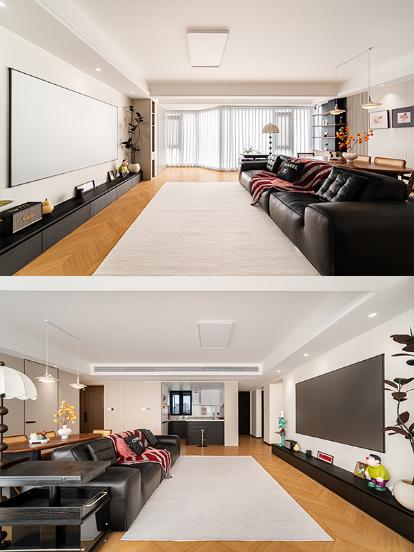 整体色调以温暖的木色和柔和的中性色为主,一进门就给人一种温馨又高级的感觉。