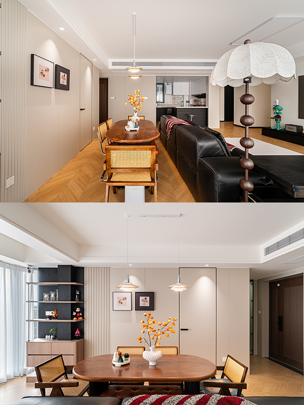 细节之处更是亮点满满,从灯具到摆件,都彰显着简约中古的独特魅力。