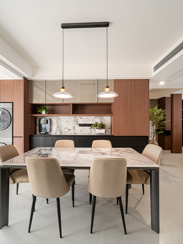 意式简约藏细节!简约边吊设计显整洁,主灯+氛围灯暖光温馨;定制隐形收纳藏杂物,家里时刻清爽~