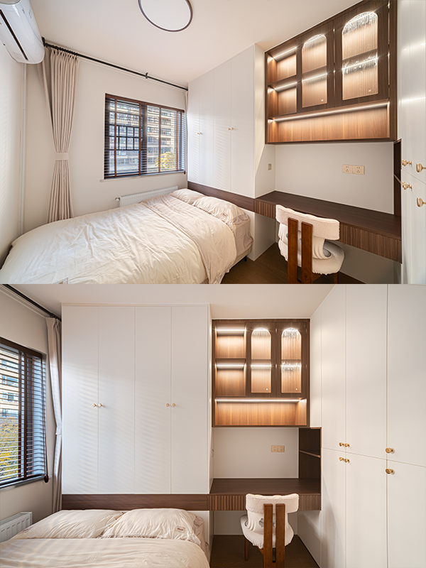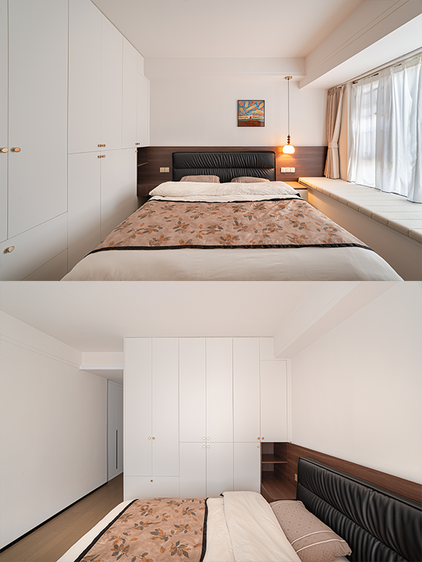 衣柜、储物柜全做嵌入式,隐形把手不破坏线条